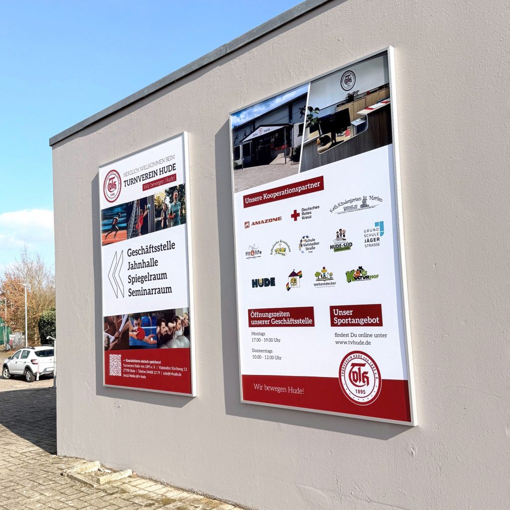 Leuchtender Outdoor Wandrahmen mit opaler Plexiglasscheibe